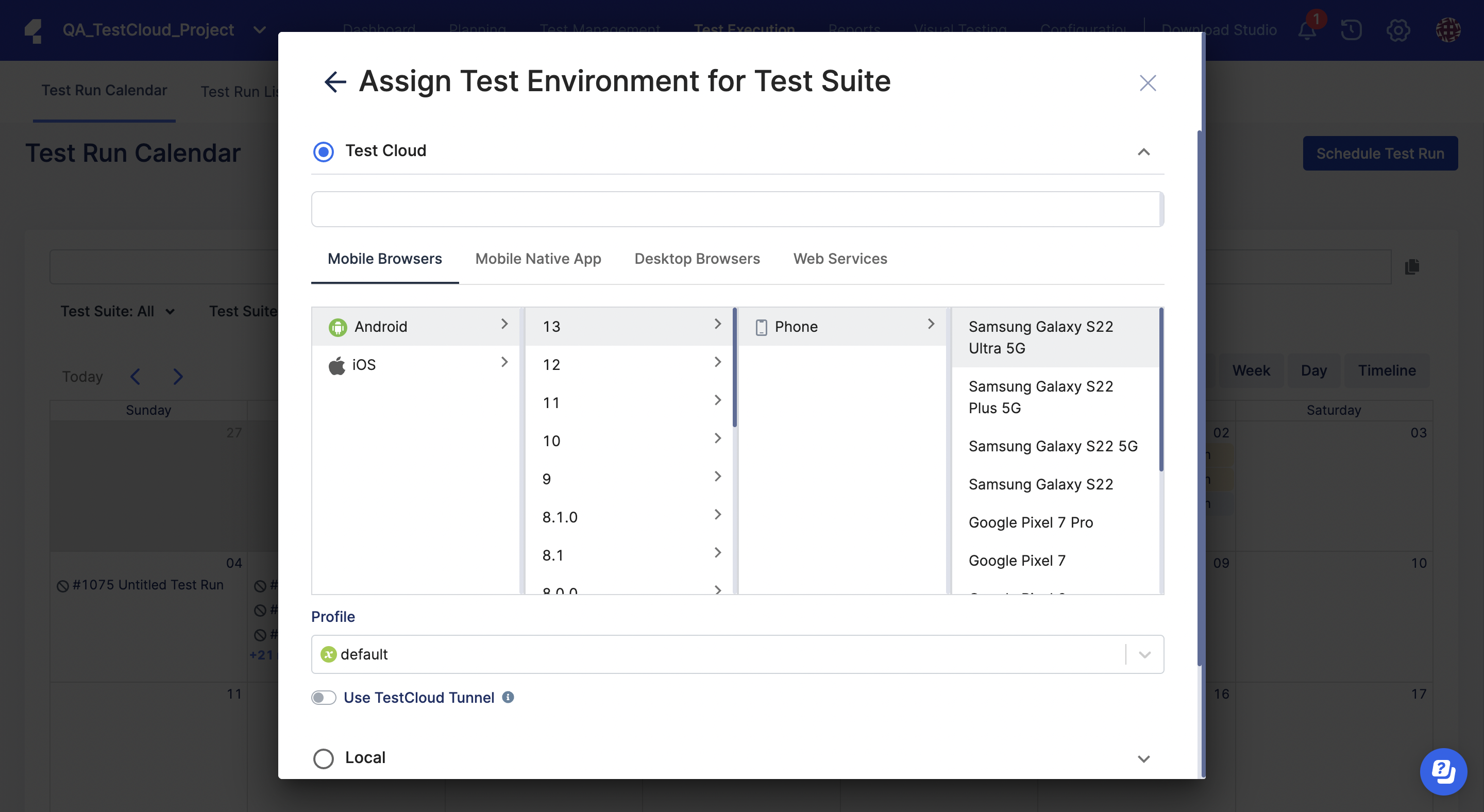 When scheduling a test execution in TestCloud environment, if you select Katalon Runtime Engine version as Latest, the scheduler will use the most recent KRE version that is compatible with TestCloud to execute.
