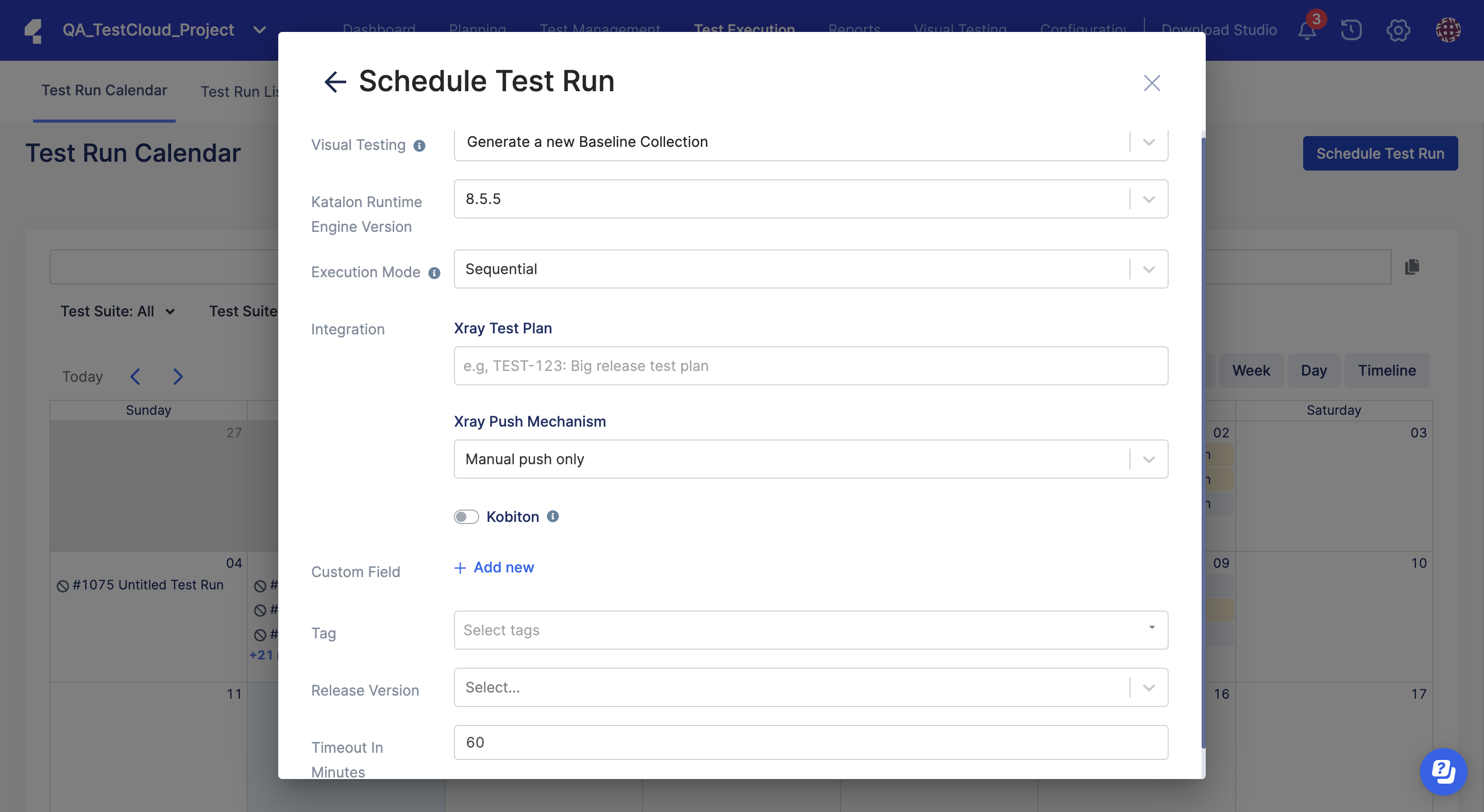 Custom Field & Tag: assign custom fields and tags to your test run schedule. See: Custom Fields and Tags.