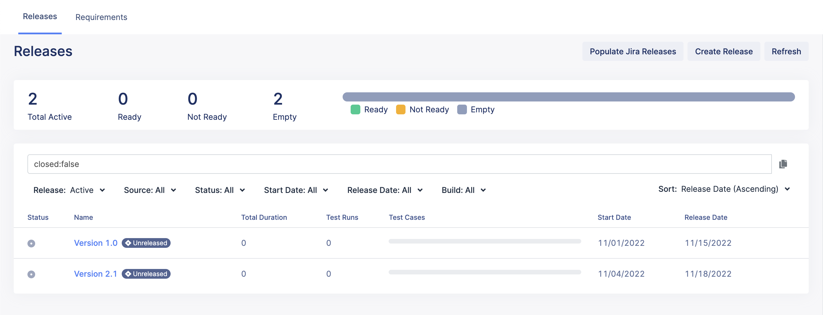 - Populate unreleased Jira releases. This method allows you to import all of the unreleased releases from a Jira project to Katalon TestOps.