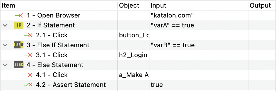 Once a test step is added as any of the control statements, it is not allowed to change into another keyword.