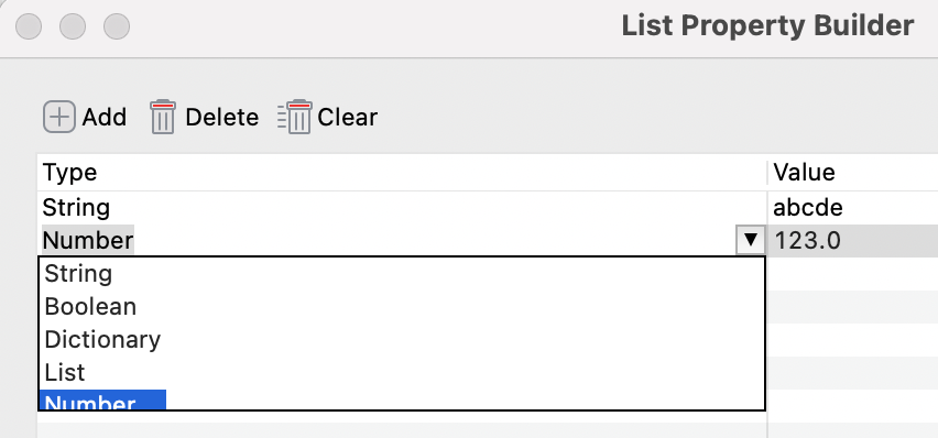 You can select from a wide range of value types supported by Katalon Studio as below: