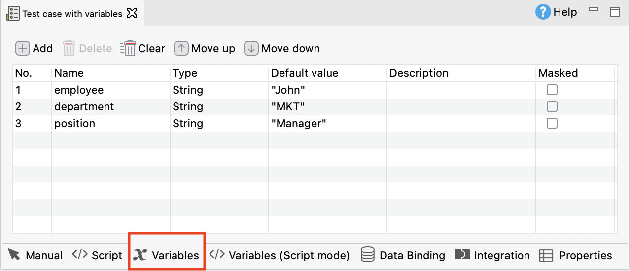- Click on the test case, then select Use Variables and Binding at Suite Test Case.
