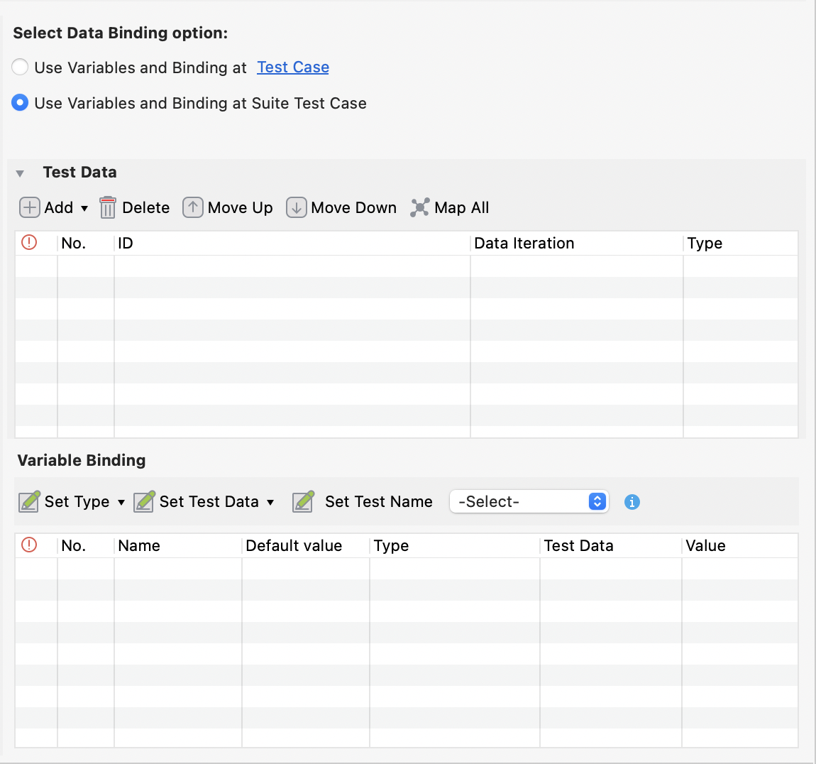 - Variable Binding: This displays all variables of the selected test case.