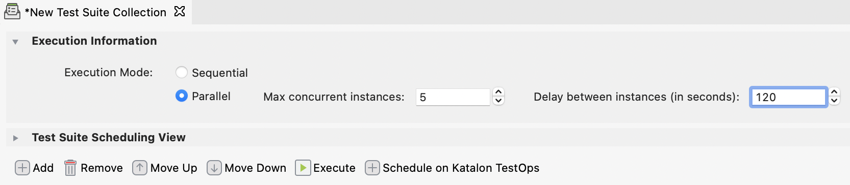 You can execute a test suite collection in sequential or parallel mode. The behaviors of these two modes are described as follows.