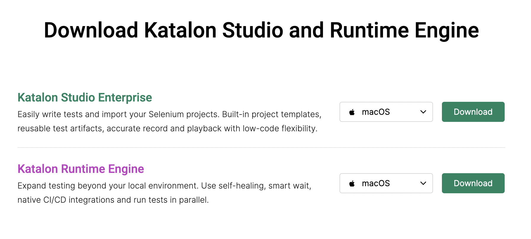 - Select the compatible version of Katalon Runtime Engine for your operating system and download.