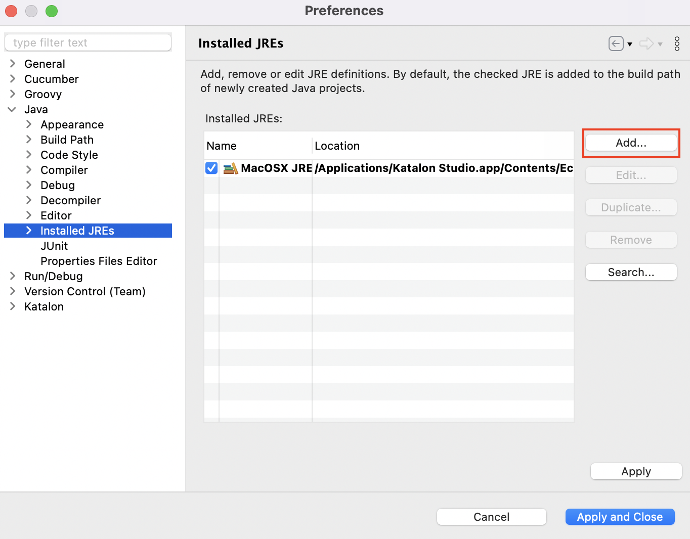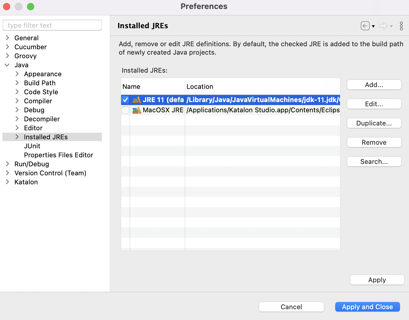 - This change applies to the JRE used to run your test projects, not the JRE used to run Katalon Studio.