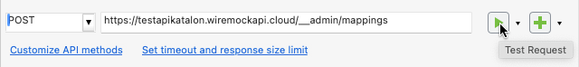 The POST request will create a mock endpoint in WireMock Cloud, allowing remote connection to the WireMock Cloud server from Katalon Studio.