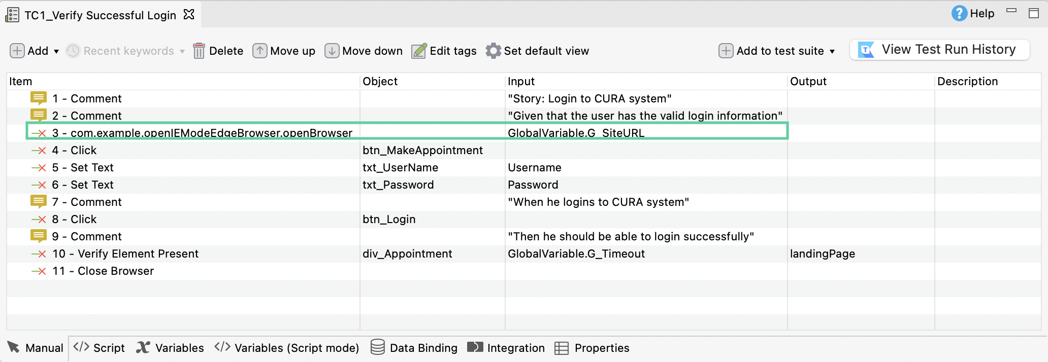 In our example, we use a custom keyword called openIEModeEdgeBrowser