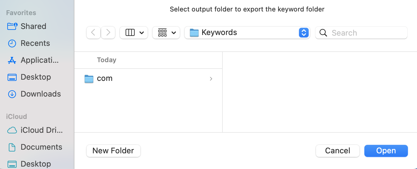 The Browse For Folder panel displays, choose your desired folder to export the keywords to the local storage.
