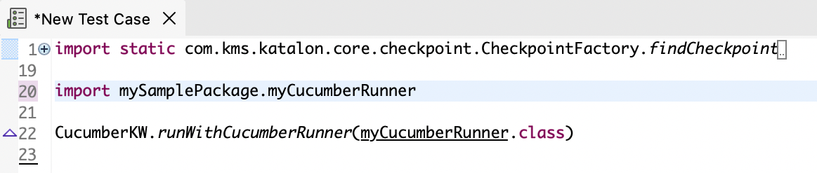Create a package called mySamplePackage under "Include/scripts/groovy" folder, then add a step definition file called myCucumberRunner within the newly created package.