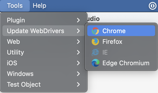From the main toolbar, select Tools > Update WebDrivers. Select a browser in the dropdown list.