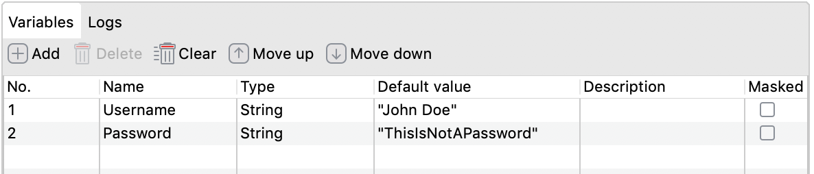 In Katalon Web Recorder, you can manage the variables directly related to your recording.