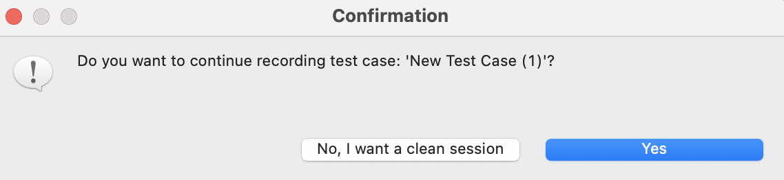 If you choose No, I want a clean session, Katalon Studio opens a new recording session without any pre-recorded steps from the current test case.