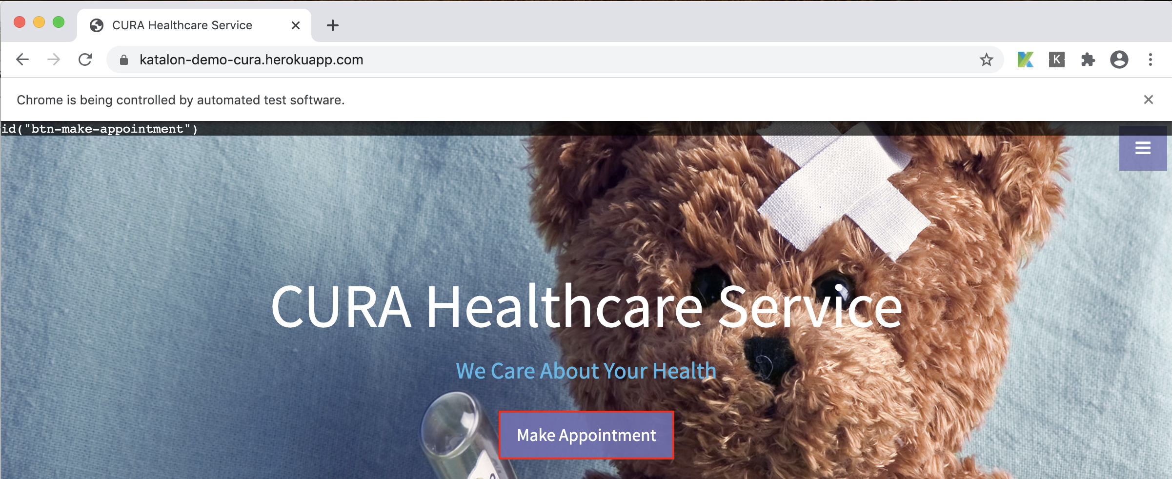 A browser instance is launched automatically. Wait for your web page to load and interact with its elements. When you hover over an element, the browser highlights the element and displays its correspondent XPath on the top of the page.