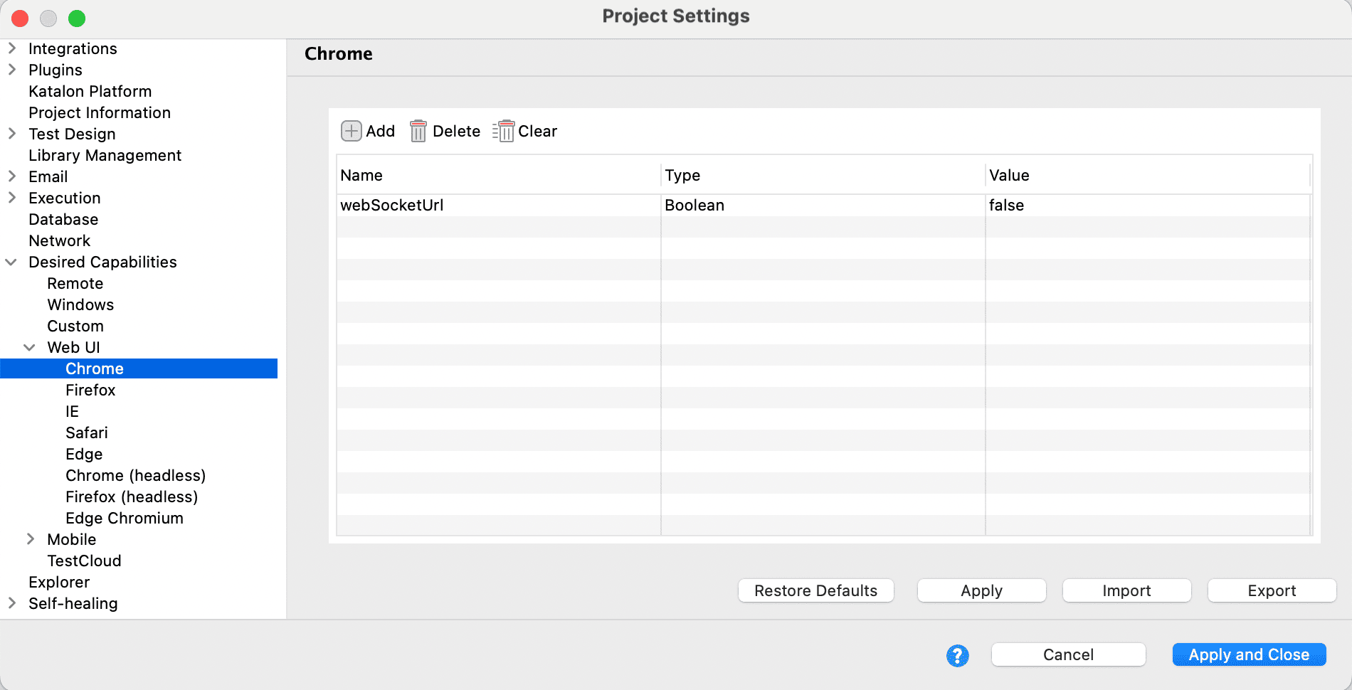 in desired capabilities can disrupt the session creation process. The correct format for custom capabilities requires a vendor prefix, such askatalon:option