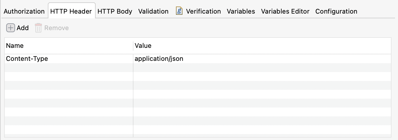 You can configure the header information needed for sending the RESTful request object. By default, the Content-Type value is generated automatically based on the HTTP Body. You can also select headers from the list of suggested options (by double-clicking on the Name cell) or enter another header. Refer to Supported HTTP Headers for more details.
