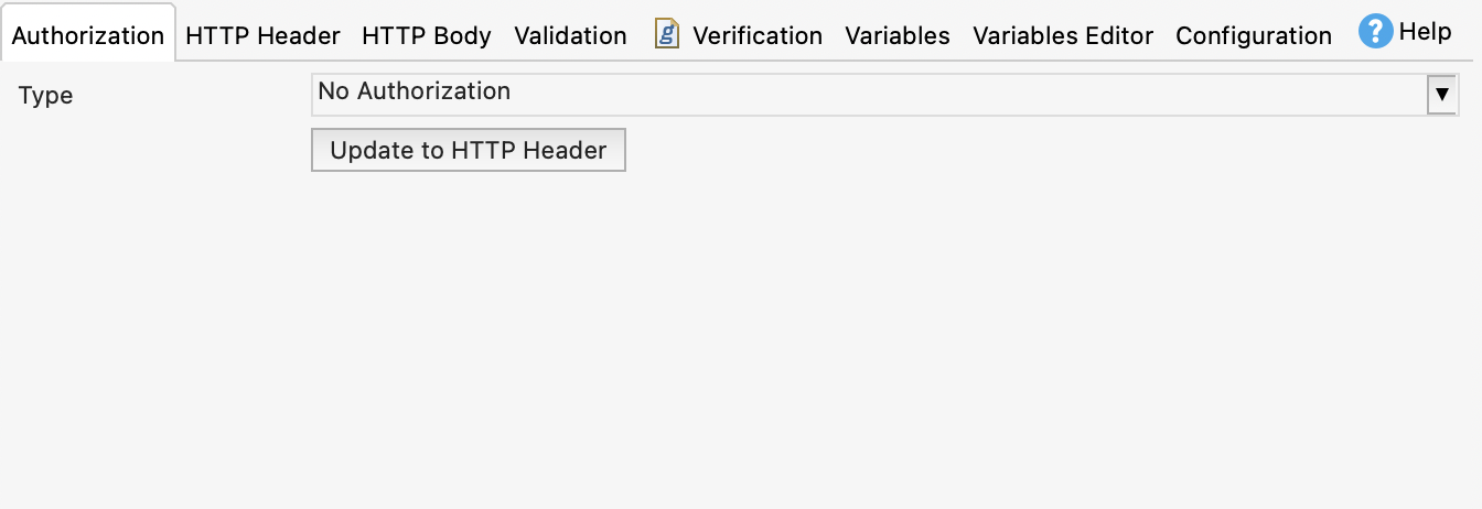By default, a newly created RESTful request is set with No Authorization. You can select from the supported authorization types to verify if the client is permitted to send the request, and to perform the endpoint operation.