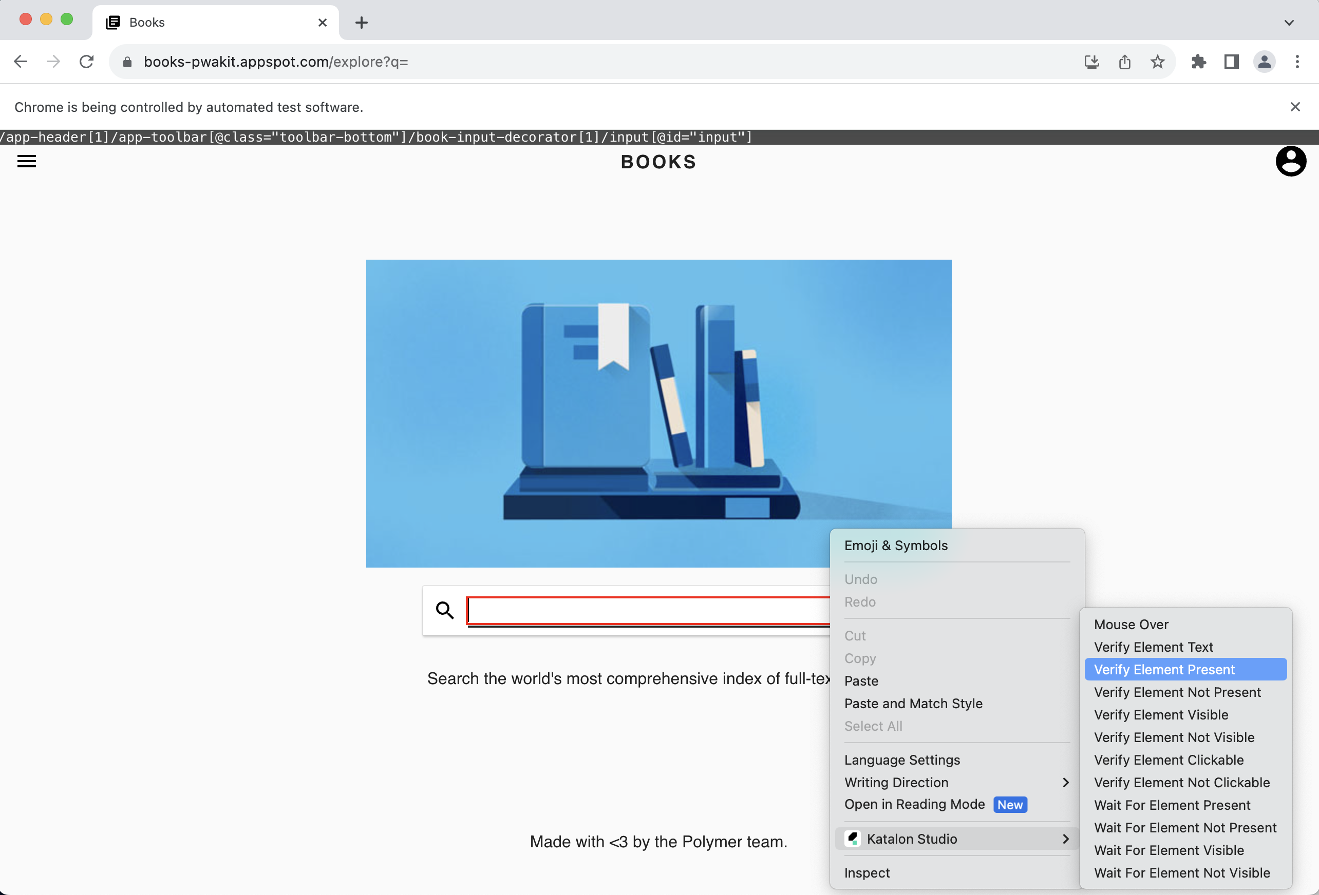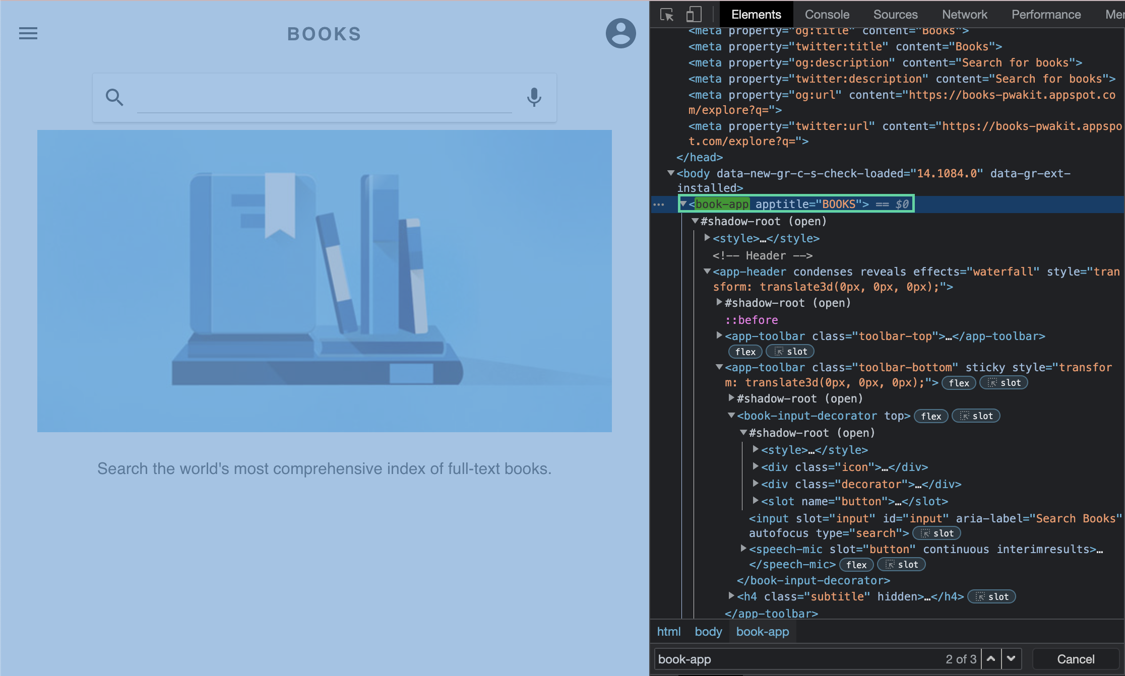 We will demo with the site Books: https://books-pwakit.appspot.com/explore?q=