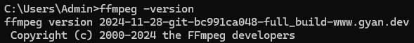 To verify that FFmpeg has been correctly added to the PATH, open the Command Prompt and run the following command: