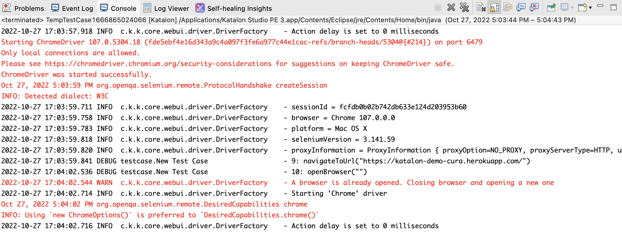 Learn more about working with the execution log and more in our Katalon Academy course: Katalon Studio: How To Work With Execution Logs and Test Reports.