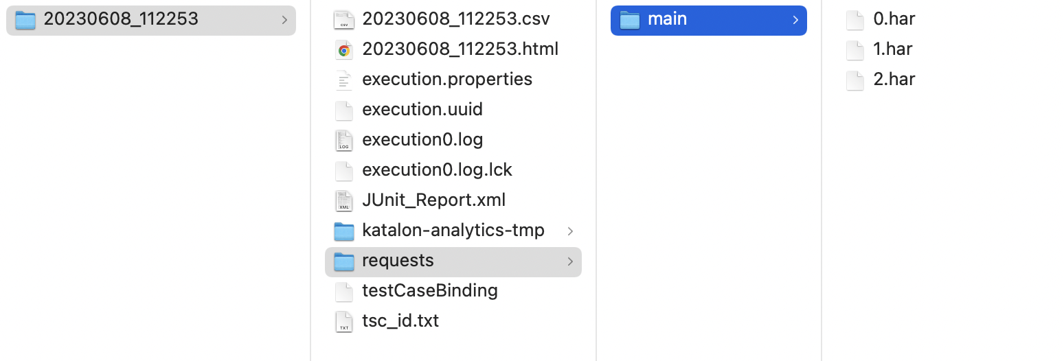 files are stored in the main folder of the generated reports folder. For example, the file path can be 20230608_112253/requests/main/0.har